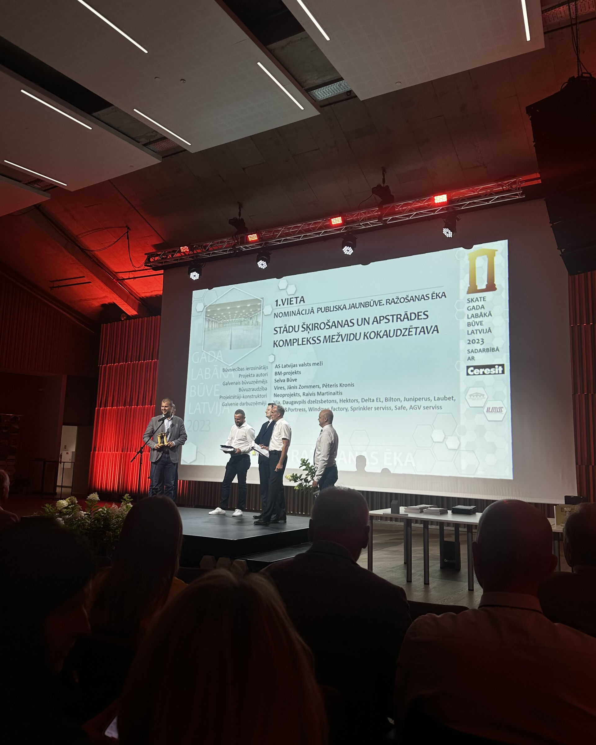 Konkursā Gada labākā būve Latvijā 2023 esam ieguvuši 1.vietu nominācijā "Publiskā jaunbūve. Ražošanas ēka" ar objektu Latvijas valsts meži Mežvidu stādu škirošanas un apstrādes komplekss un 3.vietu nominācijā "Pārbūve un atjaunošana" ar objektu Mārupes Mūzikas un mākslas skolas pārbūve.
