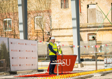 SIA “Selva būve” valdes priekšsēdētājs Rolands Orlovskis atklāja, ka šāda mēroga sporta centrs nav tikai tehnisks uzdevums: “Tas ir arī arhitektonisks izaicinājums un iespēja uzlabot pilsētvidi: Mēs ticam, ka šī ēka kļūs par ainavisku akcentu, kas iekļausies Arkādijas parka apkārtnē un iedvesmos tās apmeklētājus. Laika kapsula, ko šodien iemūrējam ir vēstījums nākotnes studentiem par šodienas vērtībām, par to, kas mums šobrīd ir svarīgs. Un mēs, būvnieki, ar lepnumu esam daļa no šī stāsta.”