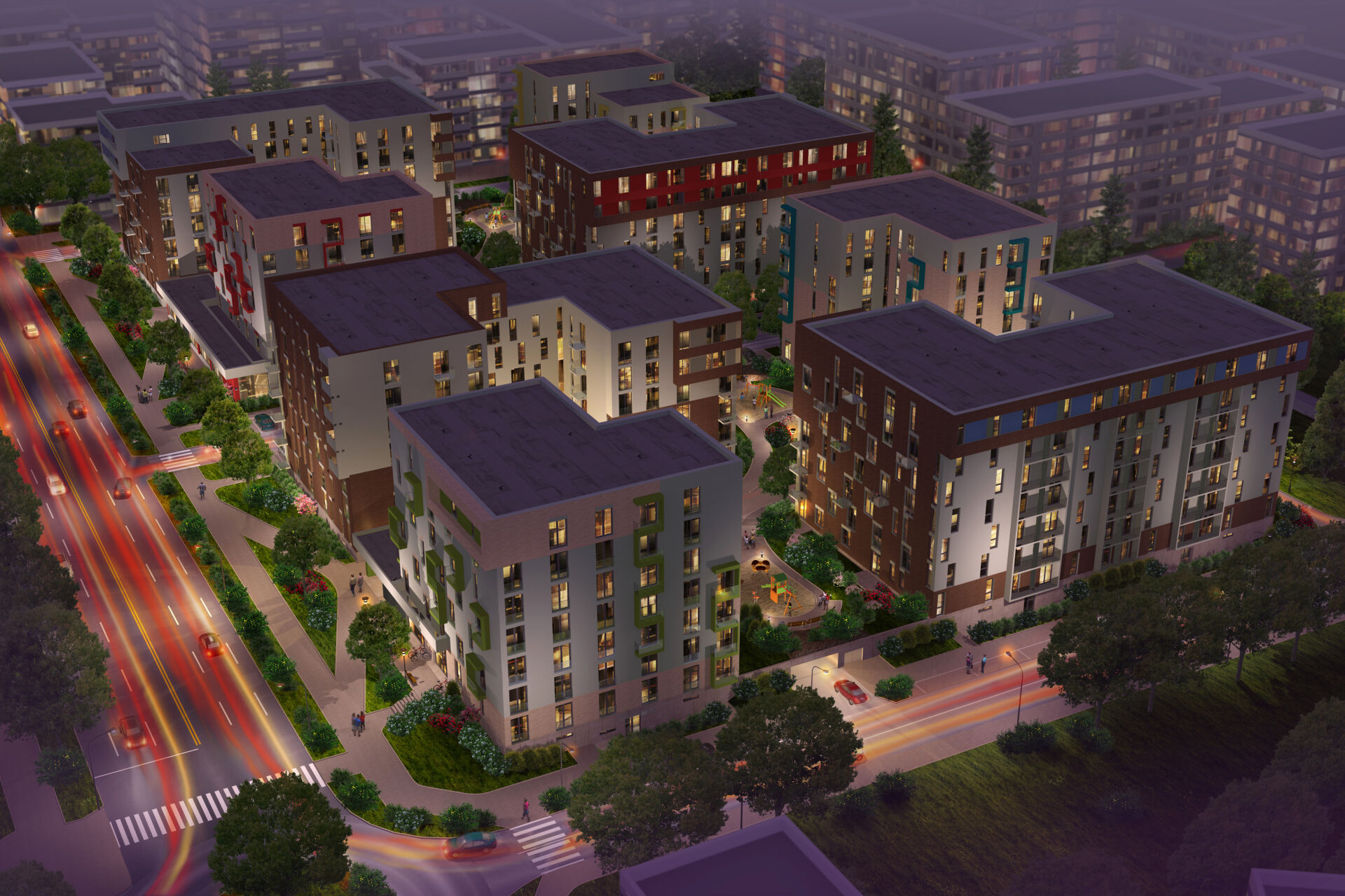 Objekts: Divpadsmit daudzstāvu dzīvojamās mājas "Ezerparka nami"