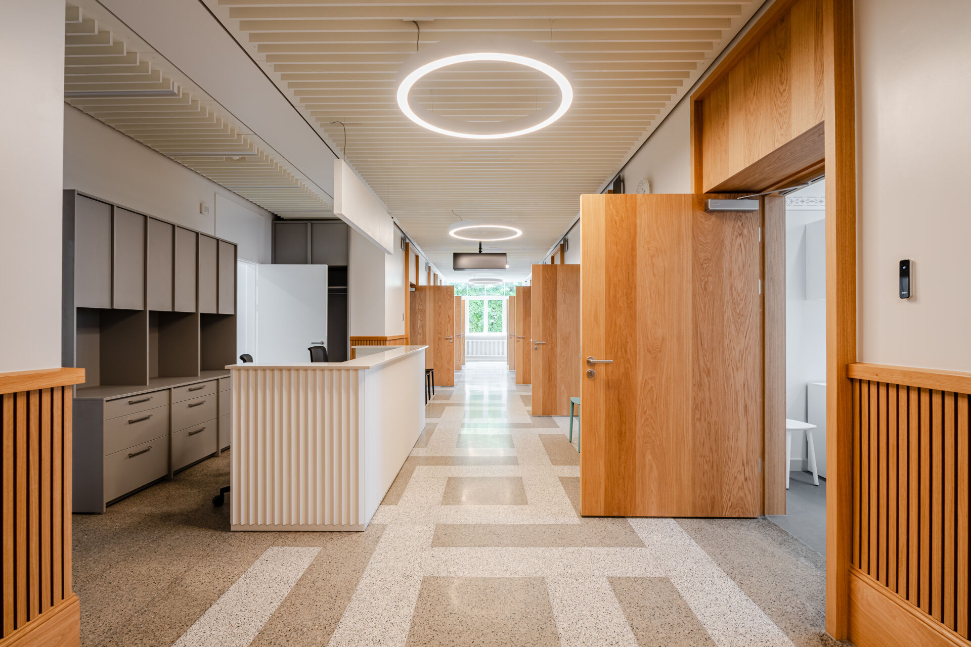 Būvniecības ietvaros tika veikti pilna cikla ēkas daļas pārbūves darbi, tajā skaitā nesošo konstrukciju pārbūve un pastiprināšana, jumta seguma montāža, apkures, ventilācijas, kondicionēšanas, siltumapgādes, siltumtrases, ūdensvada, ugunsdzēsības ūdensvada, kanalizācijas, lietus kanalizācijas, elektroapgādes, ārējā apgaismojuma, zemējuma, vājstrāvu sistēmu izbūve, BMS sistēmas uzstādīšana, medicīnas gāzu apgādes sistēmas, medicīnas tehnoloģiskā un operāciju zāļu aprīkojuma uzstādīšana, 2 liftu ierīkošana (pasažieru lifts un slimnīcu lifts). Veikti arī teritorijas labiekārtošanas darbi.