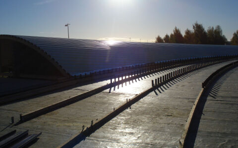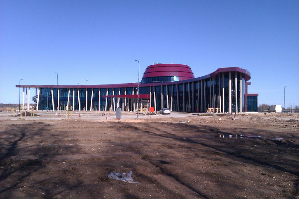 Tika veikta termināla ēkas karkasa montāža, stikla fasādes un jumta izbūves darbi.